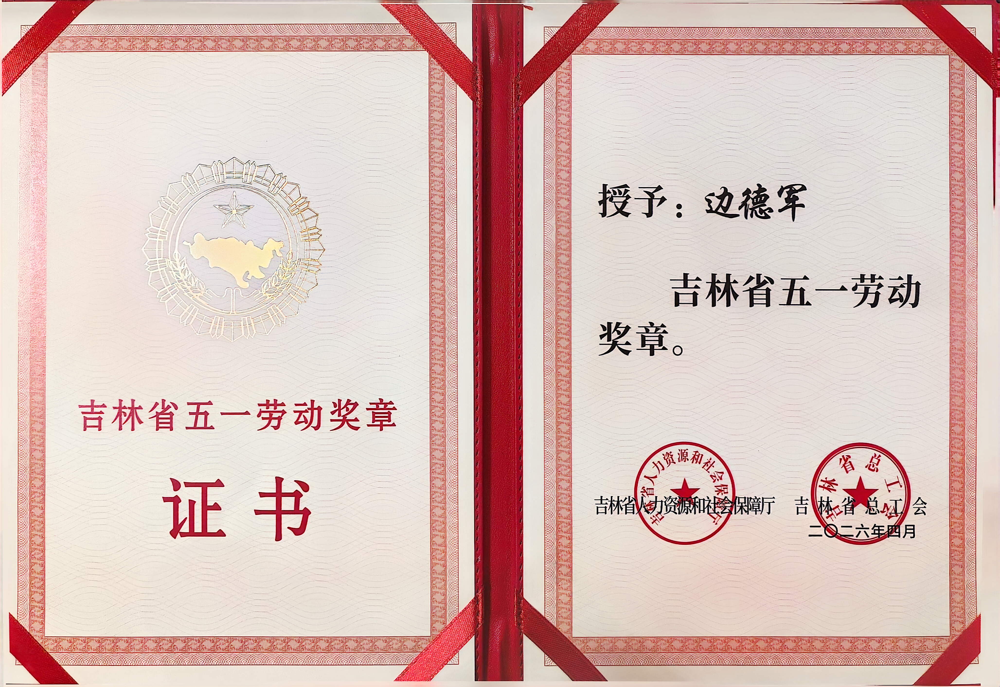 4月28日,2026年庆祝“五一”国际劳动节暨吉林省劳动奖和工人先锋号表彰发布活动在吉林省宾馆召开,我校边德军教授凭借在教育教学、科研创新、社会服务等方面的突出贡献,荣获吉林省五一劳动奖章。
