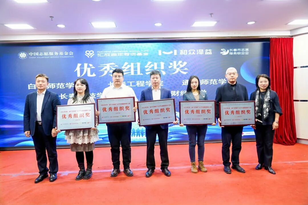 10月26日下午,决赛颁奖典礼在我校第二报告厅举行。中国志愿服务联合会理事、中志联理论研究工作委员会专家委员、长春市志愿服务联合会会长姚丽致辞,她肯定赛事成果、感谢支持单位与工作人员,阐述了赛事旨在融合志愿精神与创新精神的核心定位,并表示联合会将与高校深化合作、搭建平台,助力项目落地与吉林振兴。