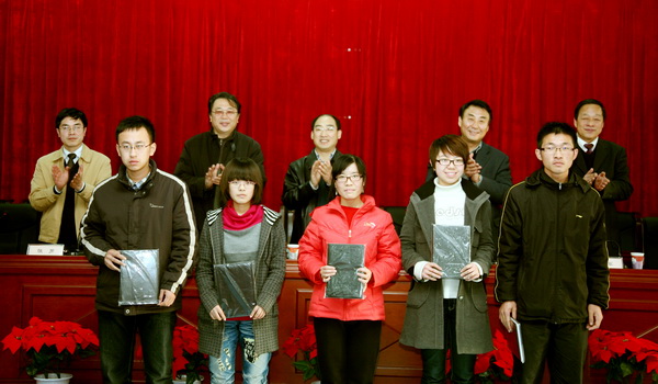 图书馆党总支书记张治江宣读表彰决定,高芸菲等八名同学获征文奖;李莉等六名同学获知识竞赛奖;王彦天等十名同学获十佳读书之星称号。与会学校领导为获奖学生颁奖。