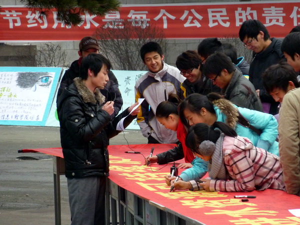 12月1日,为配合《吉林省节约用水条例》的颁布实施,我校在湖西校区广场,开展了 “节水宣传周”万人签名公益活动启动仪式。吉林省水利厅、长春市水利局的主管领导与我校田士文副校长、后勤主管领导到场,和同学们一起参加了签名活动。同时学生代表现场宣读了节水倡议书,随后新闻媒体对我校后勤主管领导和学生代表进行了采访。省市水利主管领导对我校节水工作给予了肯定。