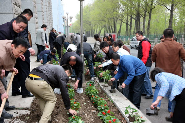 5月5日下午,机关党员志愿者在机关党委书记杨悦新的带领下,来到七教楼裙花池边种花,开展美化校园活动,以实际行动迎接我校第二次党员代表大会的召开。学校党委书记李春生参加了本次活动。机关党委委员、所属各党支部的支委、机关部分创先争优活动党员志愿者参加了此次活动。
