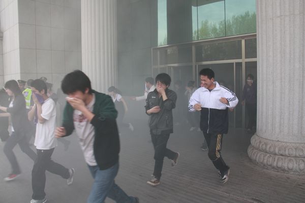 本周为我校防灾减灾宣传活动周,5月11日(本周三)14:10分,我校各级领导及综合楼全体师生员工共计2000余人进行了防灾减灾逃生自救演练。为增加本次演练的真实性,在演练中学校动用了警报器、烟雾制造机等设备。安全方面由保卫处全体21名干警带领40名国防生及16名义务引导员(由教师担任)负责全楼人员的紧急疏散工作,本次演练未发生任何安全事故。由于演练准备充分,同时得到了校领导的大力支持和全体师生员工的积极配合,从演练开始到所有人员疏散完毕,共用时3分45秒,达到了预期的效果,演练结束后,保卫处长刘英超对本次演练进行了点评。