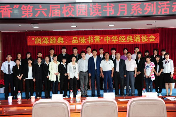 5月25日下午14:10,在逸夫图书馆八楼报告厅,图书馆举办了“润泽经典 品味书香”中华经典诵读会。诵读会是以经典诗词为参赛内容,以配乐诗朗诵的形式进行比赛,该项活动是第六届校园读书月系列活动中的重要活动之一。担任本次诵读会的评委有宣传部部长田东代、学工处处长马凯、社科部副教授高胜民、图书馆馆长张萍及图书馆党总支书记张治江。经过各教学院的选拔推荐,共有来自10个教学院的18名选手参加了决赛。