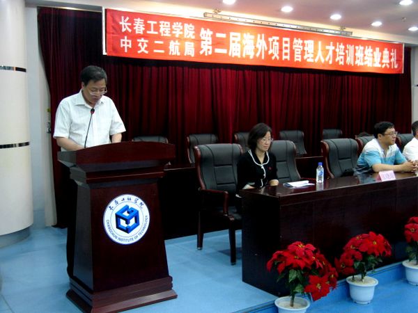 6月21日上午,我校与中交二航局第二期“海外项目管理人才”培训班结业典礼在第七教学楼会议室隆重举行。校党委副书记吴占军、中交二航局人力资源部副部长周文彬,校大学生就业指导中心、教务处及管理学院领导出席了结业典礼,培训班全体学员参加了结业典礼。结业典礼由管理学院副院长张晓瑞主持。