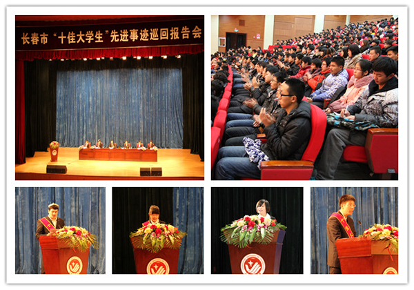 为庆祝党的十八大圆满落下帷幕,树立和弘扬长春市高校校园先进典型,激励和鼓舞广大学生积极进取、奋发向上,12月3日下午,由市委宣传部、市高校工委和长春高校工作研究会主办的长春市“十佳大学生”先进事迹报告会在长春工业大学报告厅举行。