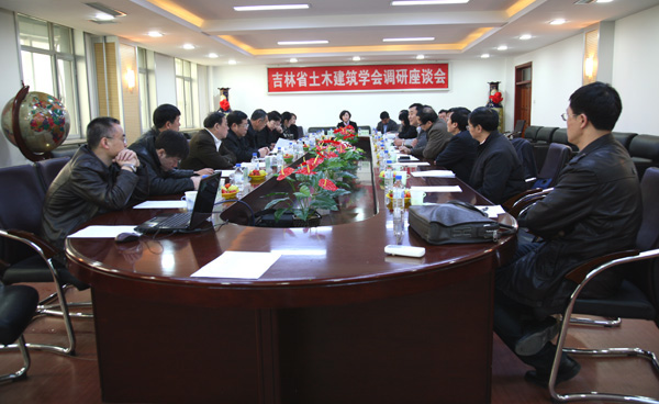 吉林省土木建筑学会是我省具有重大影响力的一级学会,现有12个分会,其中热能动力分会和建筑与房地产经济分会由我校承办。 韩立强院长在座谈会上对吉林省土木建筑学会给予我校的大力支持表示感谢;杨晓东副院长介绍了我校学会的总体概况和取得的成绩,并介绍了我校指导和支持学会发展的经验。我校吉林省土木建筑学会热能动力分会会长周清村、建筑与房地产经济分会会长谭敬胜分别介绍了近年来分会的工作情况。我校分会所取得的成果得到了学会领导的 充分肯定。学会理事长赵胜堂在总结中强调,热能动力分会和建筑与房地产经济分会工作以应用领域方向为主,与学校定位一致,是学会工作的一大特色。
