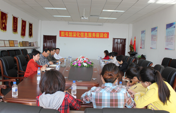 如何深化图书馆信息服务是本次座谈会的主旨和目的。图书馆张萍馆长在介绍中提到,虽然我校图书馆信息服务方面的工作走在了其他省属兄弟院校的前面,但相对重点高校还有一定差距,因此深化信息服务工作是图书馆今后工作的重点方向。