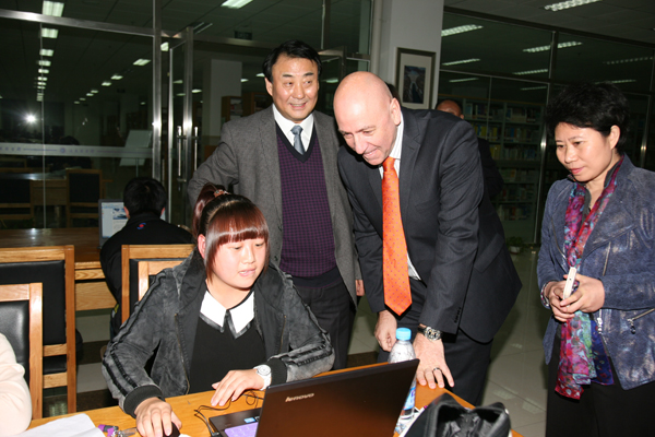 访问期间,韩立强校长和马奥尼校长分别代表学校签署了两校《2014—2020框架合作协议》。并且,两校代表就双方合作办学事宜进行了深入地探讨,除继续并完善已经开展合作的办学项目工作外,还就合作办学专业的拓展、博士培养、两校教师及学生交流活动等议题进行了商议。会谈后,在韩立强校长的带领下,西苏格兰大学马奥尼校长一行参观了我校工程训练中心、逸夫图书馆、水利仿真实验室、结构实验室等教学设施,以及CIT—UWS学习中心。