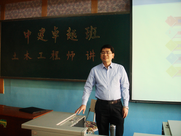 为办好此项讲坛,土木工程学院聘请了中建系统的工程技术专家进行现场工程师知识讲座。11月12日下午,中国建筑第八工程局天津公司柳向辉总经济师来到土木工程学院,就工程商务知识方面作了专题讲座。柳向辉总经济师以天津机场项目建设引入,从工程预算相关知识、预算基价知识等几个方面与“中建卓越班”全体学生做了深入交流,并在课堂上通过问答测试了解学生的掌握情况,现场学习气氛浓厚,讲座效果很好。
