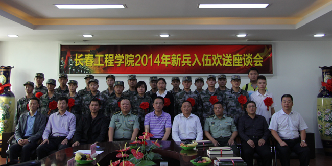 会上,校武装部部长李金明同志对我校2014年征兵工作进行总结并宣读《长春工程学院2014年新兵入伍名单》。我校今年无论是上站体检人数,还是最终参军人数都位列朝阳区所属高校的第一名。窦立军副校长代表学校向光荣应征入伍的全体新兵表示热烈的祝贺并对他们提出了殷切的希望:一要珍惜荣誉,牢记使命;二要严格锻炼,献身国防;三要建功立业,为母校争光。