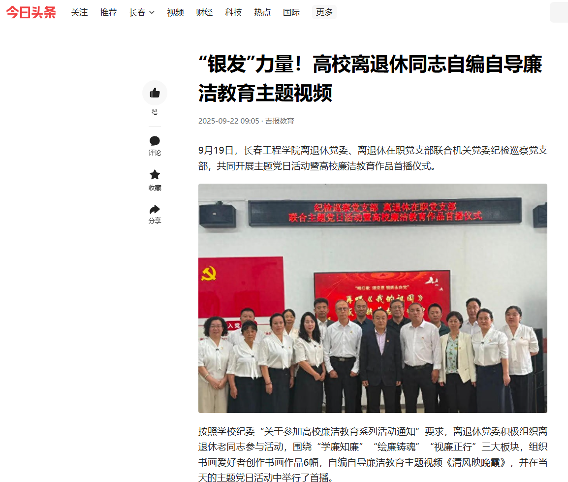 今日头条等媒体报道我校离退休同志自编自导廉洁教育主题视频
