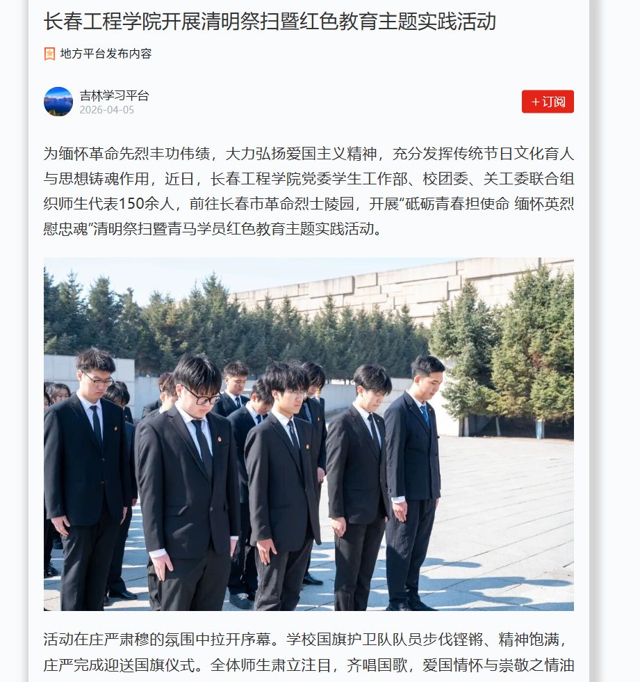 【学习强国】长春工程学院开展清明祭扫暨红色教育主题实践活动