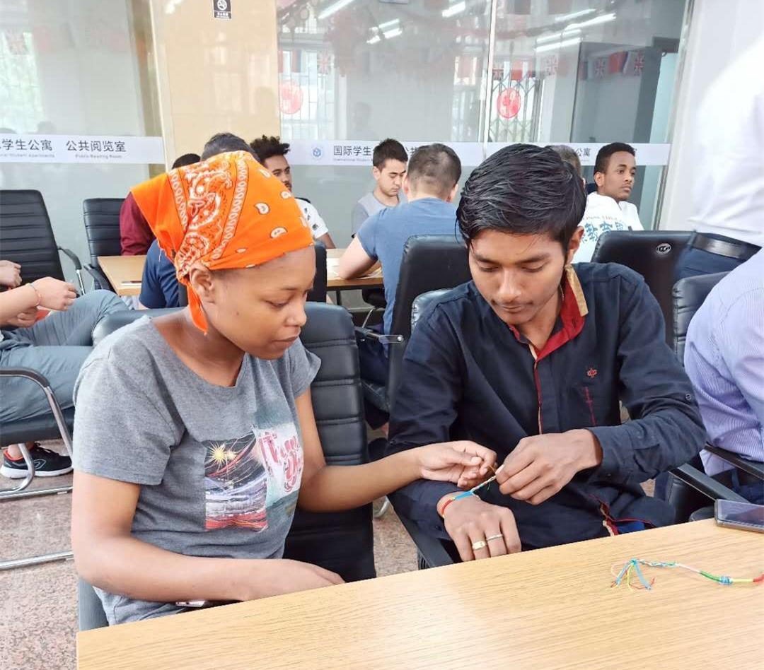 为丰富我校国际学生校园文化生活,增进中外文化交流,6月18日,国际教育学院组织了“浓情端午,与爱同行”中国传统文化活动。活动现场,老师们为国际学生讲解了端午节的由来、屈原的生平以及端午节的习俗等中国文化。国际学生们与老师们共同编五彩丝线、绘画彩蛋、品尝粽子,感受中国历史文化的博大精深。