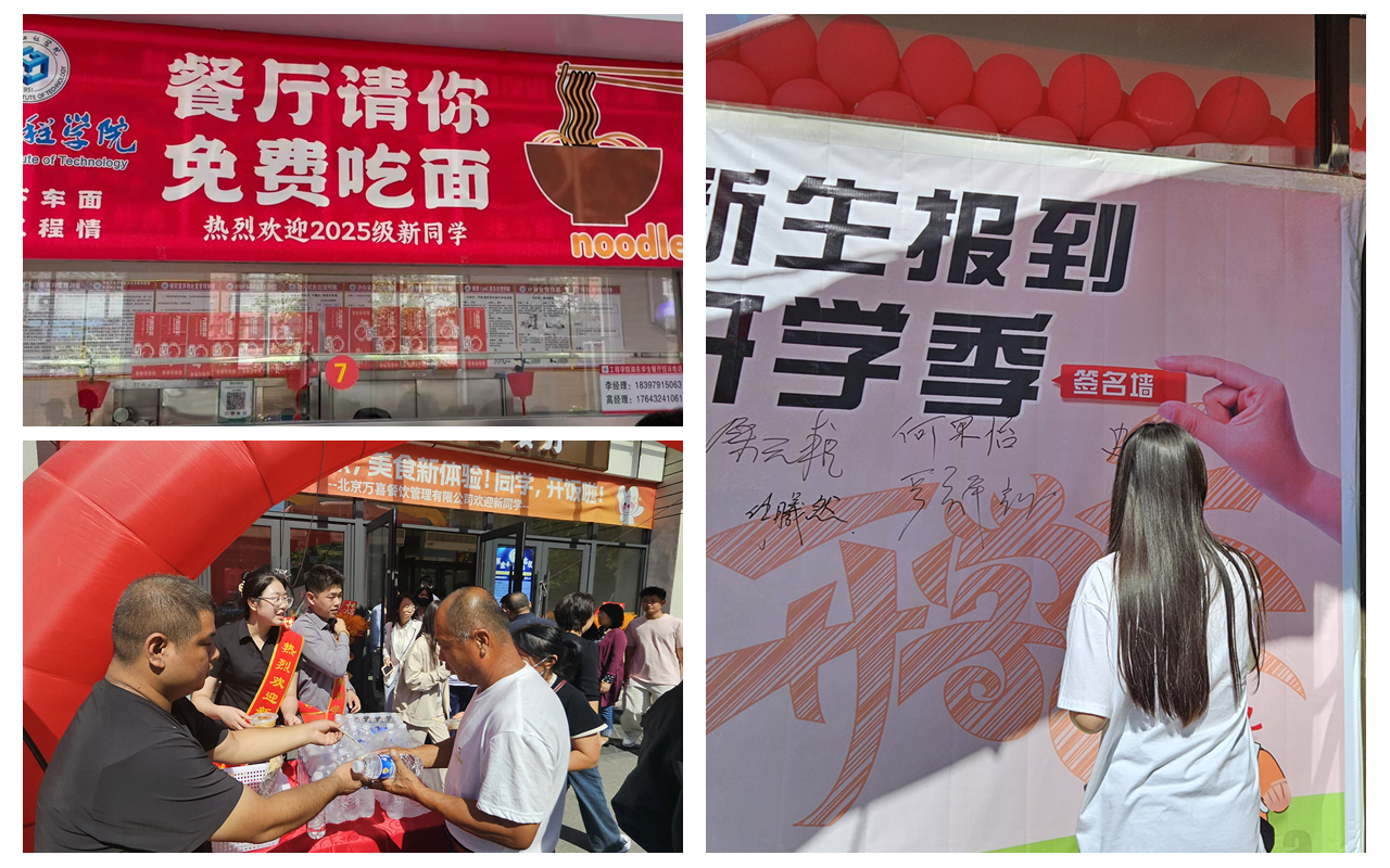 学校各餐厅设置了学生家长休息区,为新生赠送下车面、免费发放矿泉水,设置了打卡签名墙,还举办了打折卡抽奖活动,通过多样的活动温暖每一位新生。