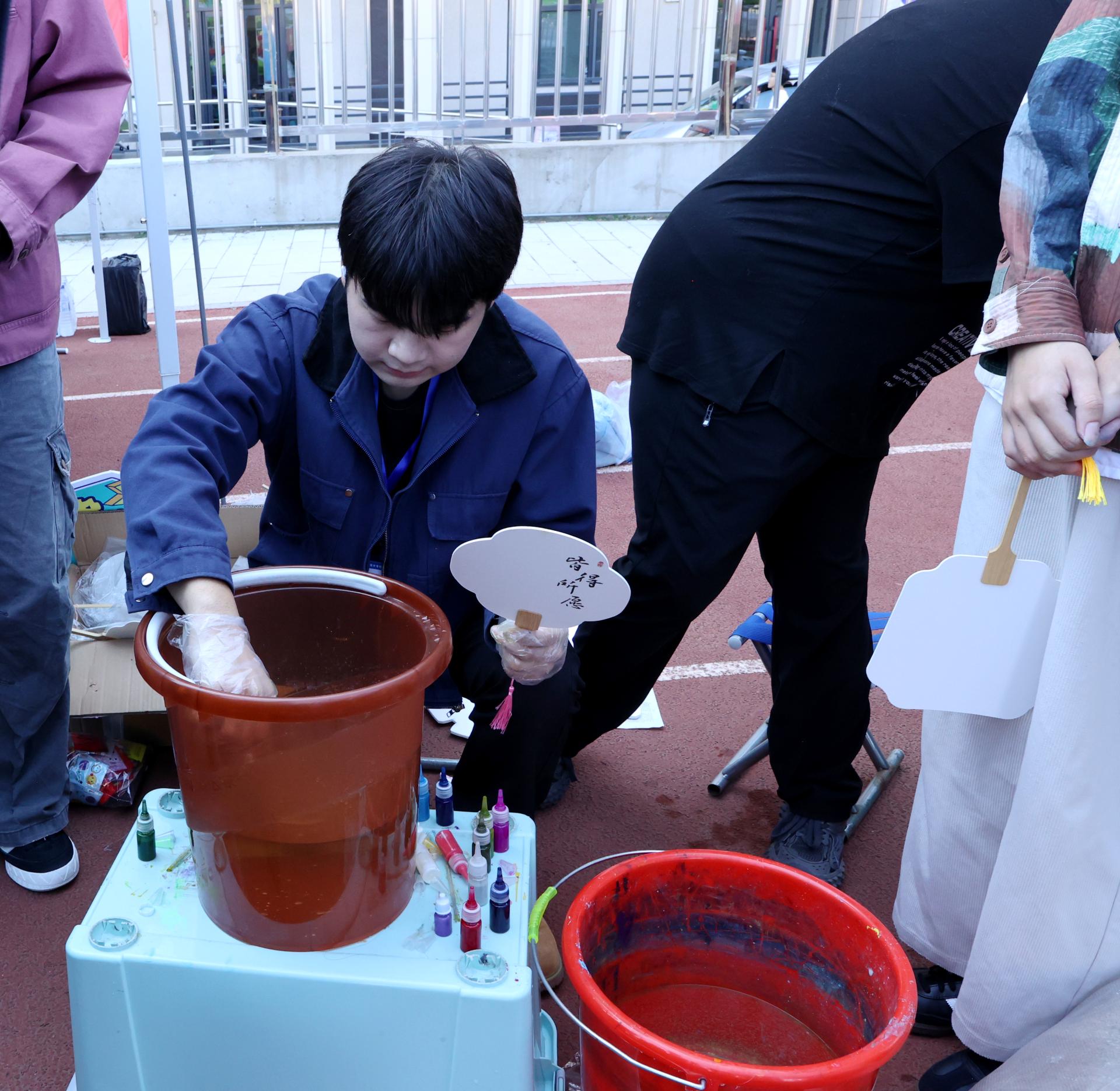 各学院的迎新点更是亮点纷呈,成为展示学院特色与创意的窗口。一枚枚定制书签、一张张特色明信片、一瓶瓶定制包装的可口可乐……别具匠心的礼物传递着学校的珍贵心意。此外,各学院在迎新点结合专业特色开辟了特色展区,如宝石文创作品展区、岩石矿物展区、测绘仪器展区、漆扇工艺展区、巡检机器人展区,同学们可以在现场进行玉石雕刻,体验传统文化,感受科技魅力,这一张张展示学院特色、学科文化的“名片”让新同学们在惊喜与温暖中,也感受到学院的独特气质与归属感。