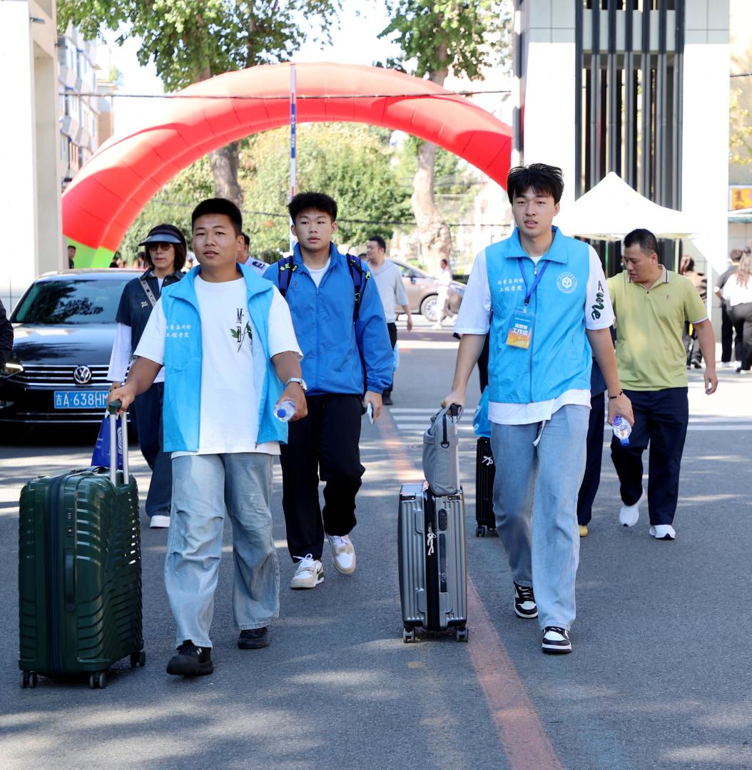 迎新当天,晨曦微露,学校工作人员和学生志愿者已守候在火车站出站口,手持引导牌,迎接每一位远道而来的新生与家长。校园内,迎新展板、暖心标语、各具特色的路标指引随处可见,引领着新同学们前往人生的新站点。