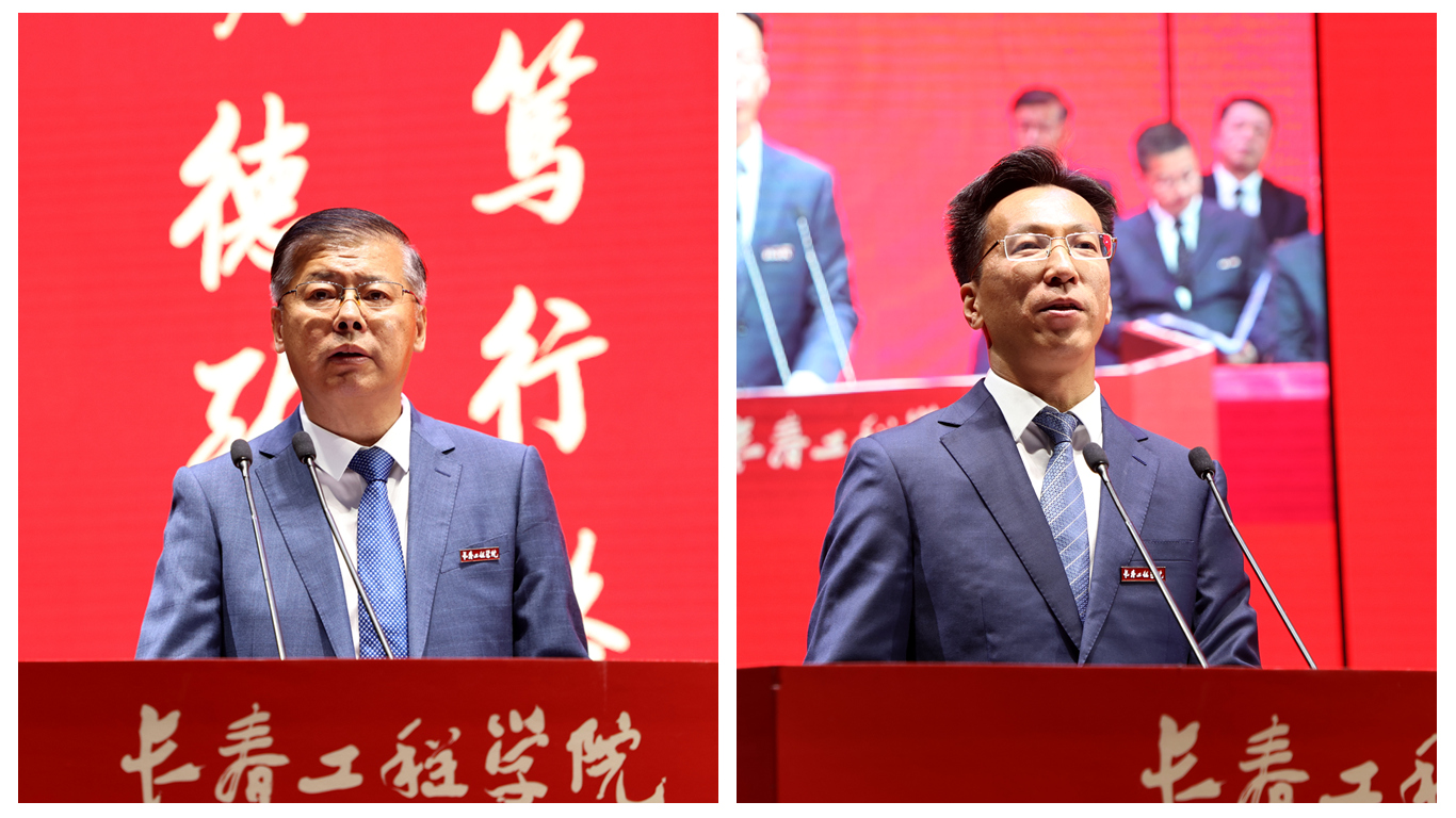 BIM技术产业学院的韩风毅教授作为教师代表发言,他向同学们提出“心有山海”的期许:山,是攀登的意志,是学术的峻岭;海,是包容的胸襟,是世界的无垠;“心”,是这一切的根基。他希望同学们于静默处积攒力量,于开放中拥抱世界,于平凡中创造非凡。王磊作为优秀校友代表发言,他结合自身经历,与同学们分享了自己的感悟,希望同学们通过强健体魄、为人生筑基,珍视同窗、聚团队之力,心系母校、永葆归属感,来锤炼身心底气,深植成长沃土;通过以德为先、行稳致远和勤学善悟、赋能未来实现修身立德扎根,知行合一实干。