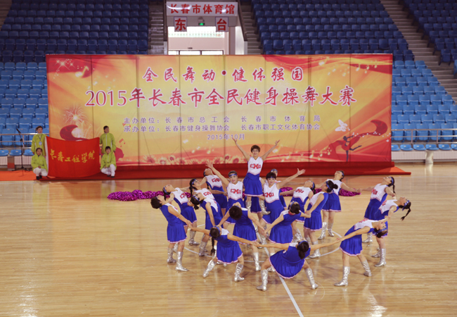 10月20日,由长春市总工会、长春市体育局、长春市健身操舞协会、长春市职工文化体育协会联合举办的长春市“全民舞动·健体强国”全民健身操舞大赛在市体育馆举行。在学校工会、妇委会、女教工健身操协会的精心组织下,我校由女教工健身操协会成员组成的代表队积极参赛。