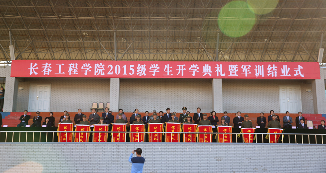 9月26日,长春工程学院2015级学生开学典礼暨军训结业式在湖西校区运动场隆重举行。学校领导韩立强、张未知、杨晓东、孟祥萍、别惠彬、窦立军,沈阳军区驻我校选培办主任邸守林上校,中国人民解放军65322部队副政委王亚峰中校,学校有关部门领导及各教学院党政负责人参加了开开学典礼和军训结业式并在主席台就座。结业式由校长办公室主任于玲利主持。