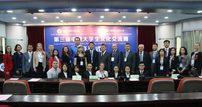 9月23日下午,“第三届中俄大学生文化交流周”在湖西校区第七教学楼十三楼报告厅举行了开幕式,南俄国立技术大学代表团成员,校长韩立强,校团委、国际教育学院负责人以及国际教育学院部分师生参加仪式。