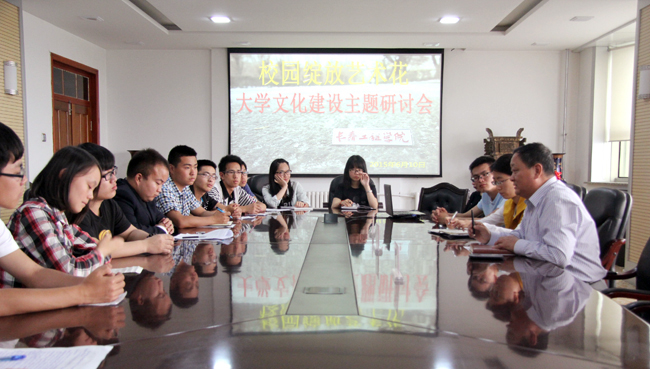 6月10日下午,学生工作部(处)、校团委、大学生思想政治教育研究所在第七教学楼十楼会议室联合举办了“校园绽放文艺花”——大学文化建设主题研讨会。来自各学院的20余名学生代表参加了研讨会并在会上发言。