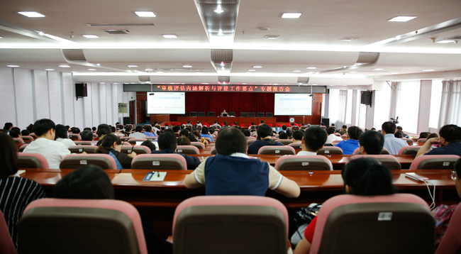 李志宏研究员以《审核评估内涵解析与评建工作安排》为题,从审核评估内涵及基本框架、审核评估范围解析及学校评建工作要点三大方面,明确而清晰地剖析了新常态下本科教学工作审核评估的指导思想、内涵范围、工作重点。报告简明扼要、内容充实、详略得当、案例丰富,对我校干部教师准确把握审核评估的实质和评估范围(项目、要素、要点)内涵,明确学校的审核评估主要目标和任务,坚持“以评促建、以评促改、以评促管、评建结合、重在提高”的评估方针,有条不紊、扎实深入地开展审核评估工作,提高人才培养质量都具有重要的指导意义。