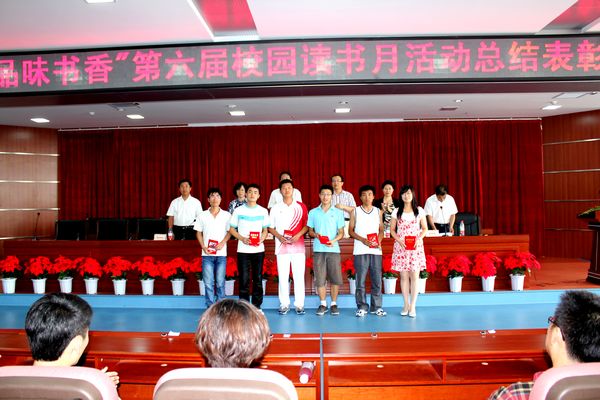 图书馆党总支书记张治江宣读了第六届校园读书月系列活动表彰决定。与会领导为在中华经典诵读会、主题征文比赛和“十佳读书之星”活动中获奖的读者颁奖。