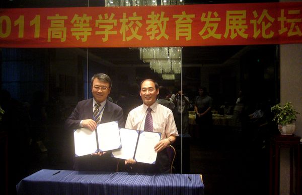 我校任玉珊副院长代表学校在联盟宣言上签字。宣言决定:在两岸高校追求学术、文化、教学、科研的合作目标下,建构交流平台,以达到资源共享、优势互补、共同繁荣两岸高等教育事业的目的。吉台两地高等学校教育论坛将每年举行一次,2012年论坛活动将在台湾地区举行。签字仪式后,任玉珊副院长代表学校分别与台湾高雄第一科技大学、大汉技术学院、朝阳科技大学三所高校签订了《建立长期学术合作关系协议书》。我校与以上三所台湾高校将在学术合作、教师和学生交流等方面开展合作。