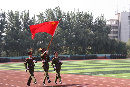 9月30日上午,伴随着雄壮的国歌,鲜艳的五星红旗迎风飘扬,我校2010级新生开学典礼暨军训结业式在湖西校区体育场隆重举行。校领导李春生、韩立强、田士文、任玉珊、吴占军、张未知,中国人民解放军驻我校选培办主任刘志文、人民解放军某部副政委杨光等出席了典礼。典礼由校办主任王远主持。