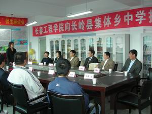 2008年6月3日上午10:00,电信学院在第一教学楼五楼会议室举行了“向长岭县集体乡中学捐书捐款仪式”。长春工程学院院党委副书记吴占军、组织部部长于晓光、校团委书记马凯、集体乡副乡长张大微、集体乡中学校长姜立忱、电信学院党总支书记刘正文、院长孟祥萍、党总支副书记赵慧、副院长张运波、于少卿等参加了捐赠仪式。
