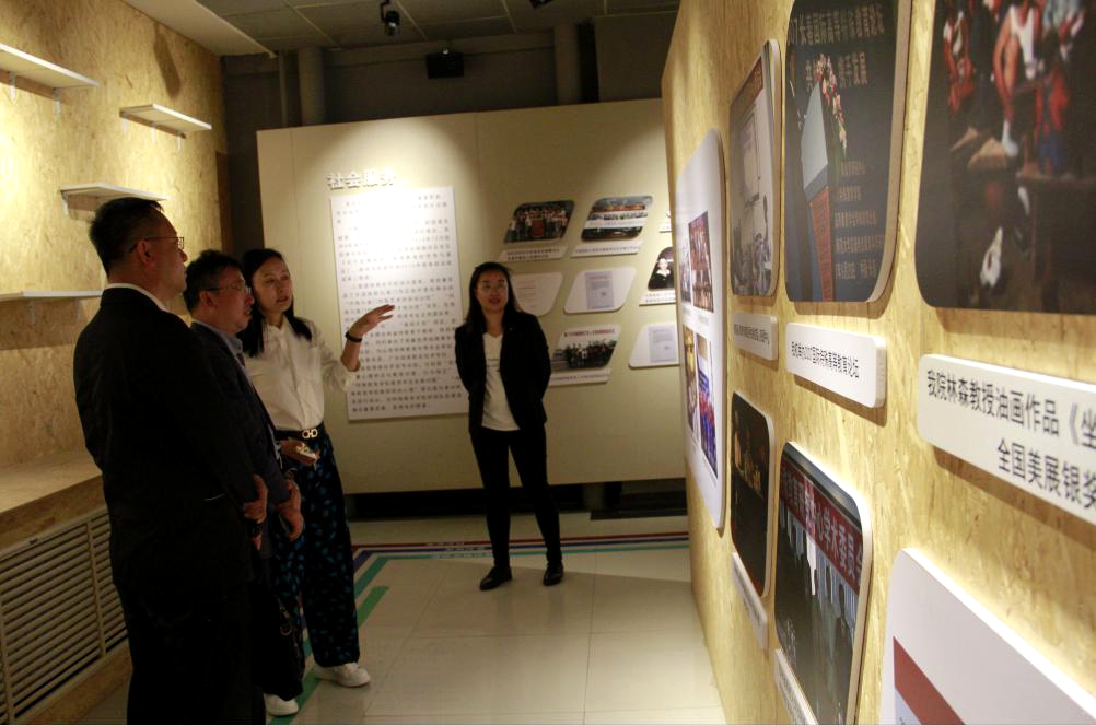 长春大学特殊教育学院综合办主任单玉霞、创新创业实践中心主任孙景华热情接待了我校师生,并带领大家一起参观学生作品展览馆、功能室等地,深入介绍了长春大学特教学院成立以来的各项办学成果和经验。