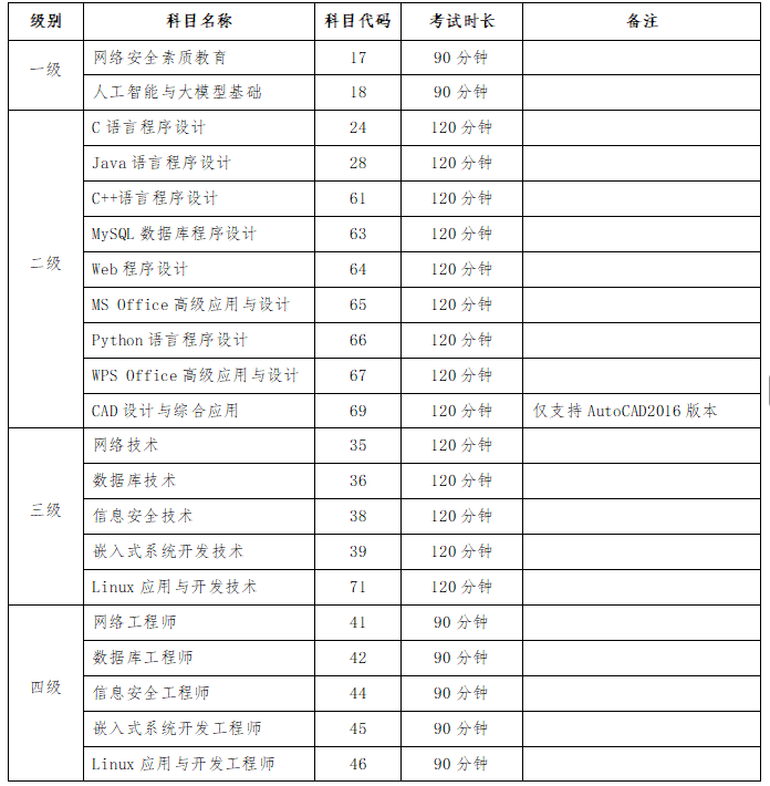 (一)单次考试每名考生最多可报2个科目,级别不限。考生不得在同次考试(包括省内、省外考点)中重复报考同一科目,重复报考者按违规处理。