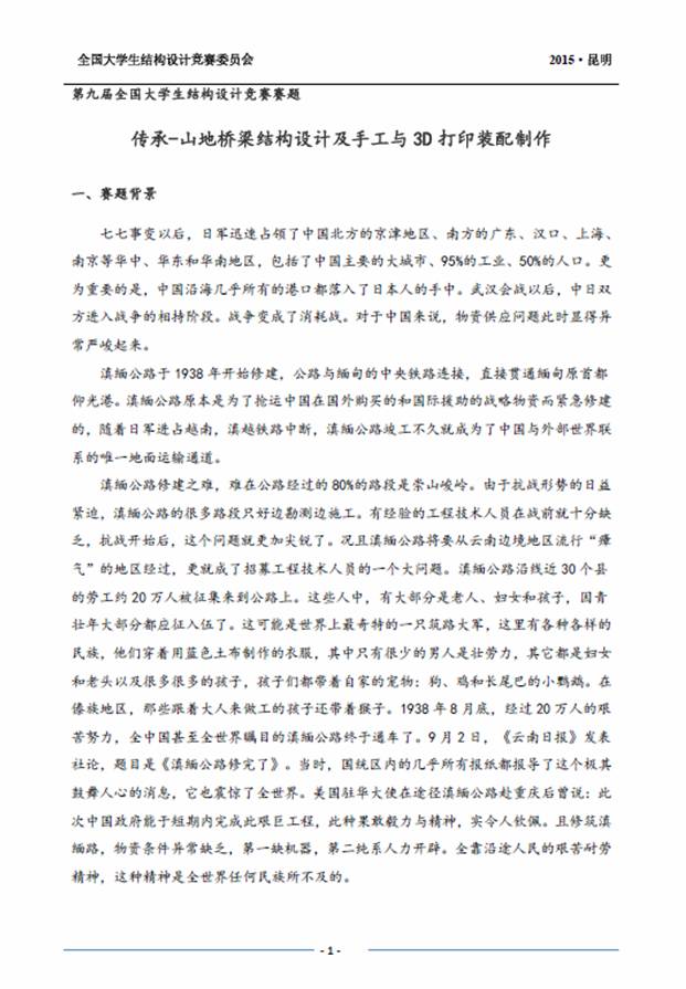竞赛题目:采用第九届全国大学生结构设计竞赛赛题。