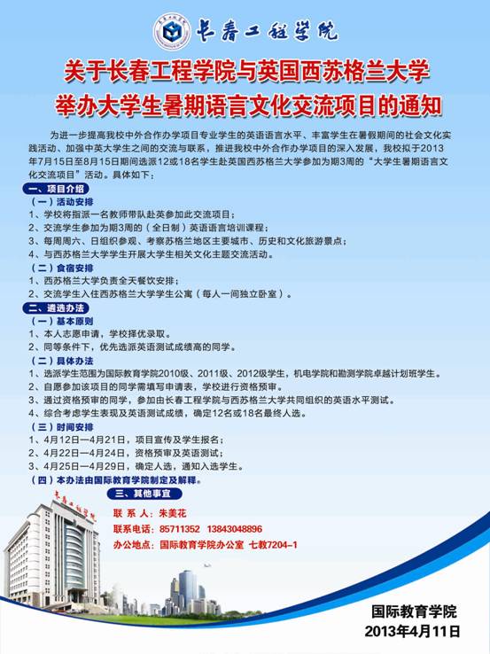 关于长春工程学院与英国西苏格兰大学举办大学生暑期语言文化交流项目的通知
