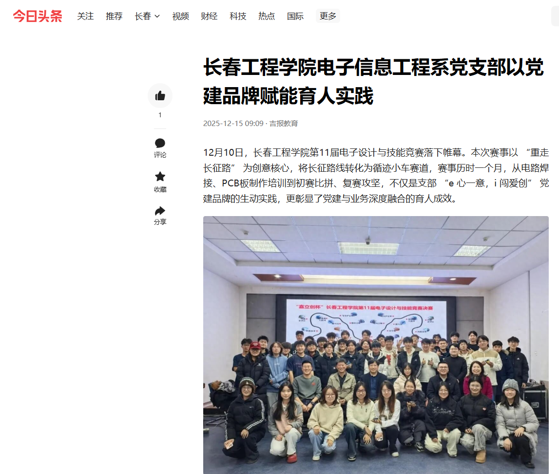 今日头条等多家媒体报道我校电子信息工程系党支部以党建品牌赋能育人实践